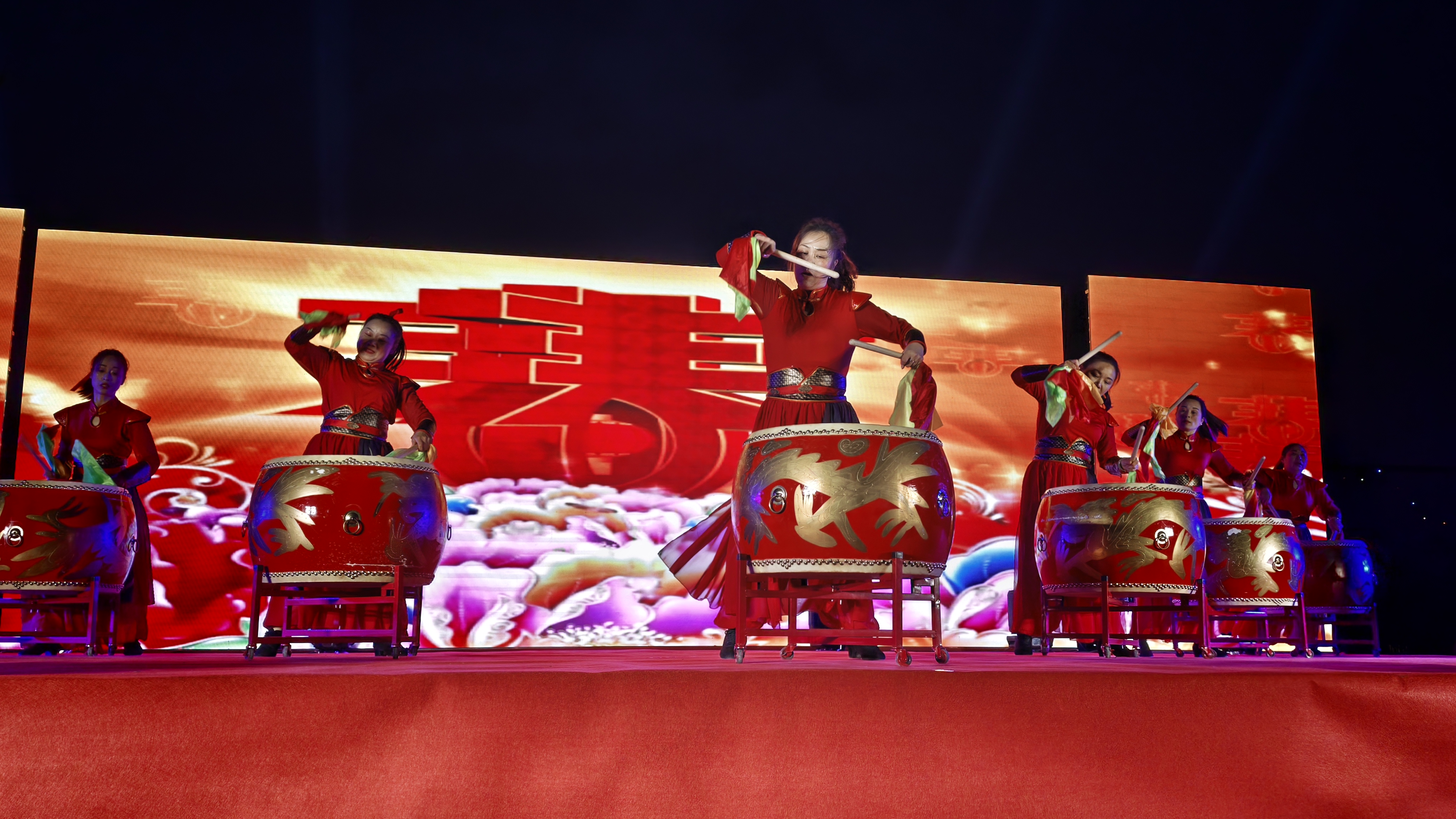 晚上7点,晚会在敖家场社区带来的大鼓表演中拉开序幕,雄浑激昂的鼓点声声入耳,敲出浓浓新春喜悦。