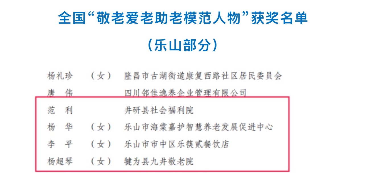 近日,全国“敬老爱老助老模范人物”获奖名单公布,犍为县九井敬老院院长杨超琴光荣上榜,成为乐山市获此殊荣的4位代表之一。这位90后姑娘,远离城市的繁华,选择扎根农村养老服务一线,用青春与坚守,为老人们筑起了一个充满爱与温暖的“家”。