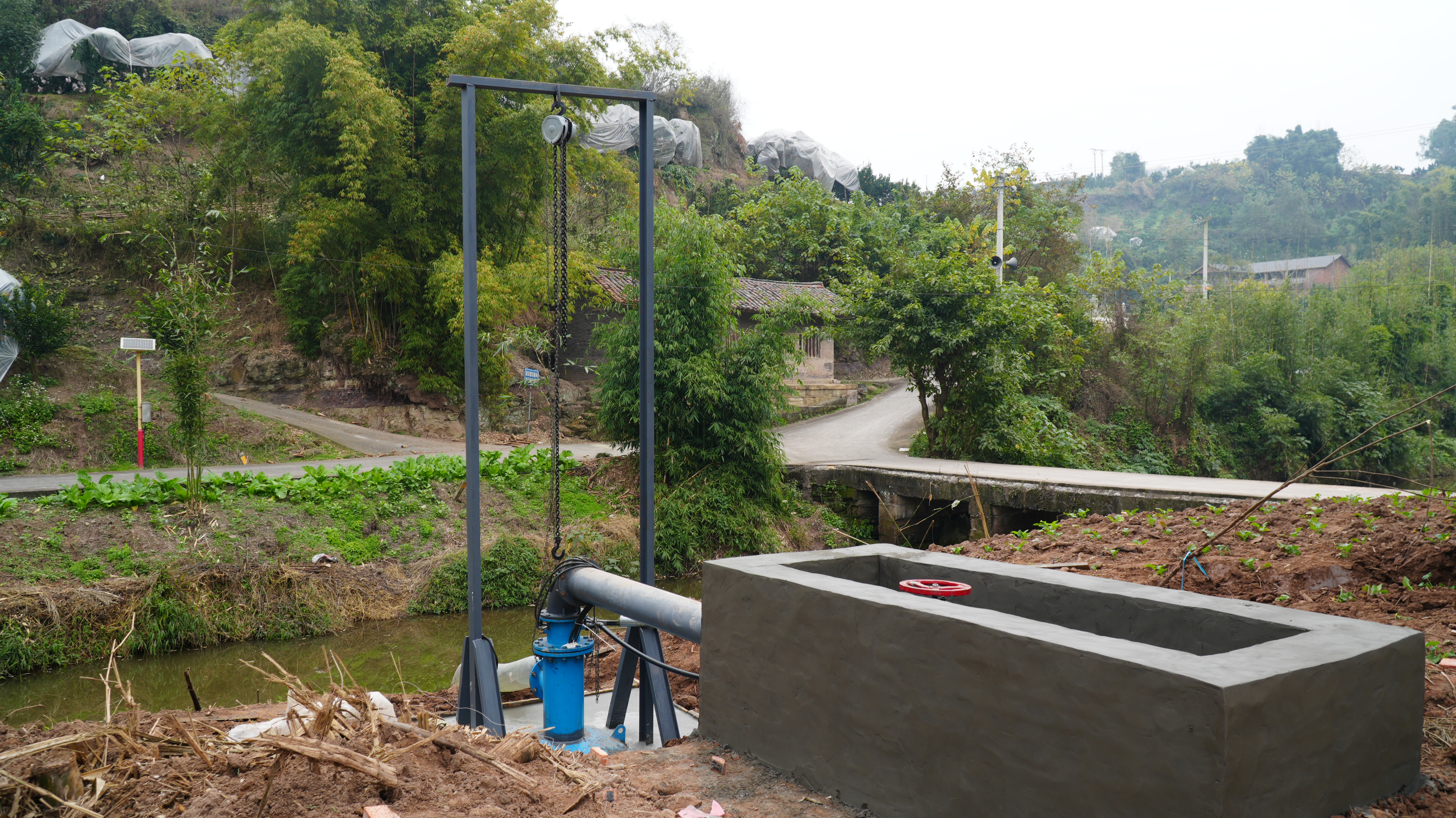 据悉,该提灌站是红蓉村今年重点民生实事项目,于10月上旬正式开工建设。考虑到组内耕地面积广、村民居住相对分散,且此前存在水源不足、输水距离远等问题,尤其3500亩柑橘园对灌溉稳定性要求高,项目建设内容进行了全方位规划,除核心提灌主机设施外,还配套建设了专用配电房、接入专相电保障供电稳定,并铺设了长达3公里的输水管道,实现水源点到农田、柑橘园的直达覆盖,满足不同作物的灌溉需求。