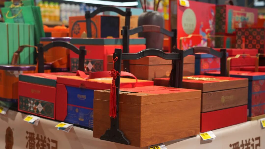 生鲜区,新鲜的猪肉、牛肉纹理清晰,凑近便能闻到淡淡的原生肉香;蔬菜区,各类时蔬鲜嫩欲滴,叶片上还沾着晶莹的水珠;月饼区,不同口味的月饼整齐陈列在专属货架上,既有适合全家围坐分享的大容量礼盒,也有方便解馋的独立小包装,满足不同消费者的需求。
