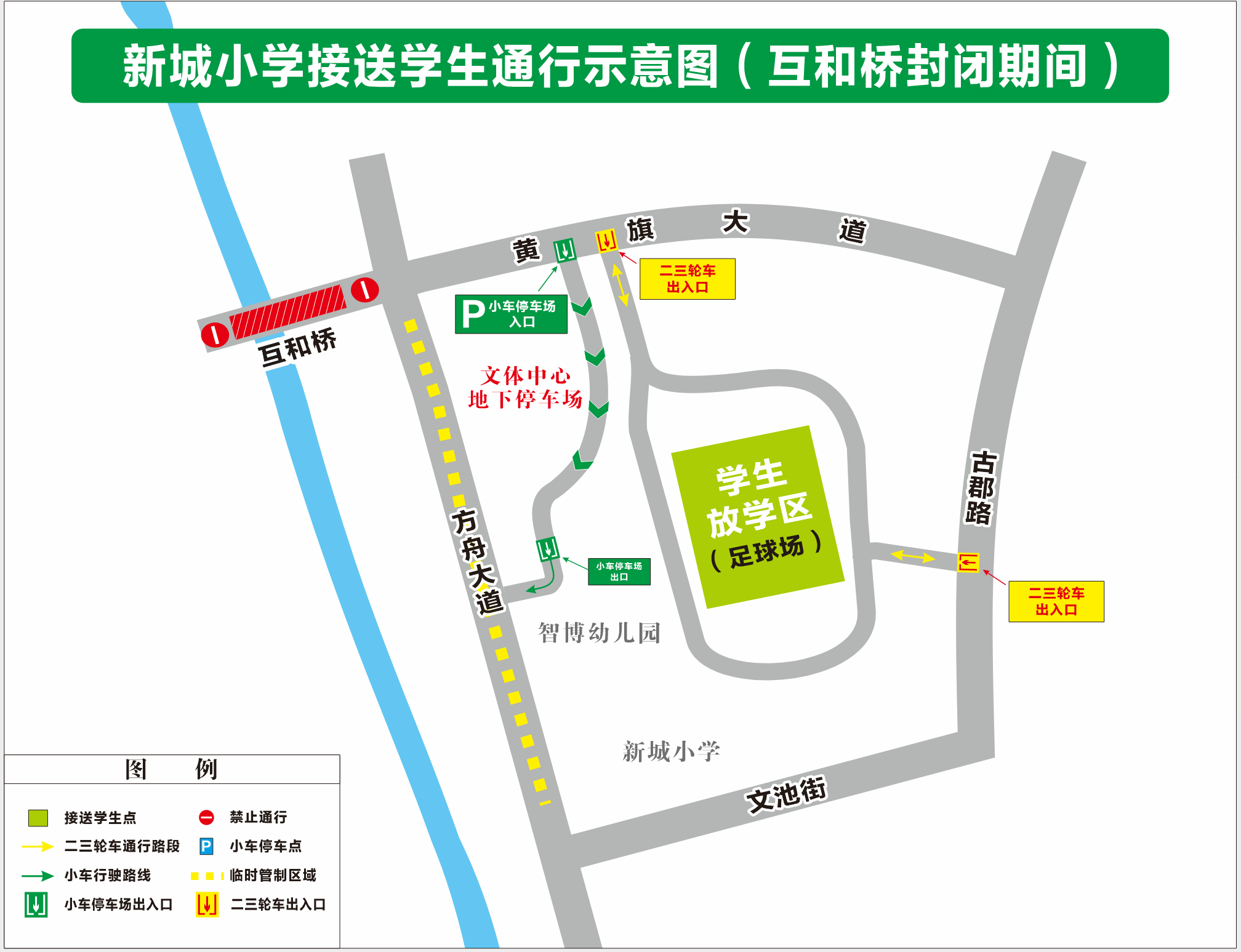 互和桥封闭施工期间新城小学接送学生通行示意图